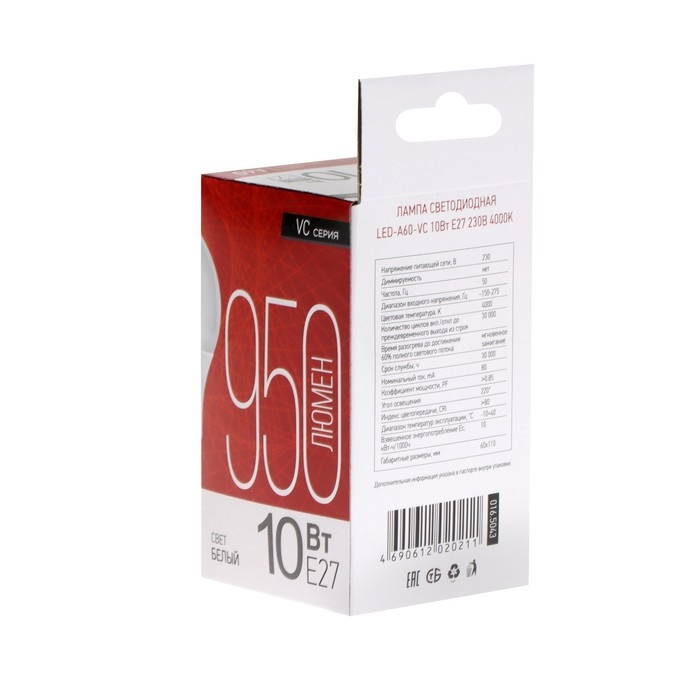 Ваш ребенок теряет зрение, делая уроки при искусственном освещении? Уникальная технология «VISION CARE» полностью исключает мерцание и вредные пульсации, поэтому лампы серии LED-VC не вызывают раздражение и усталость глаз, а значит безопасны для здоровья. При этом они максимально экономичны – по сравнению с лампами накаливания, вы заплатите за освещение в 9-10 раз меньше. Лампа классической грушевидной формы подойдет для всех светильников со стандартным цоколем Е27.
