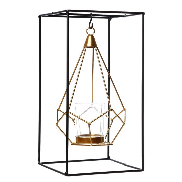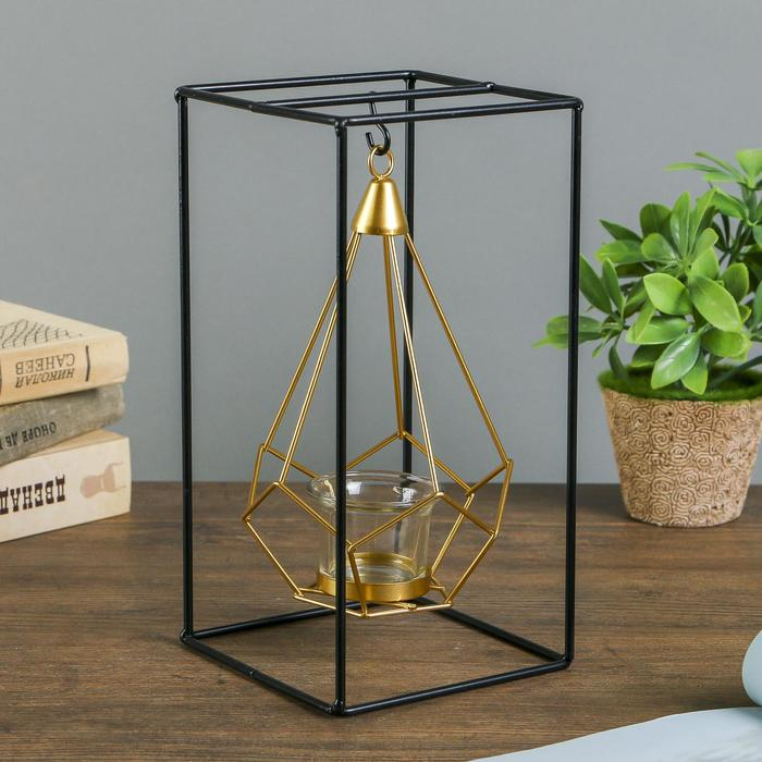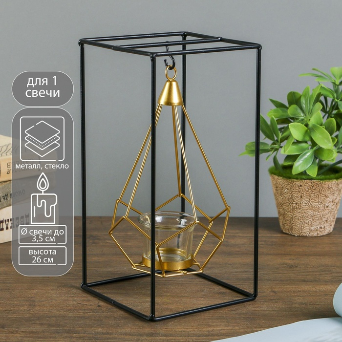Подсвечник металл на 1 свечу "Пирамида в прямоугольнике" 26х13х13 см