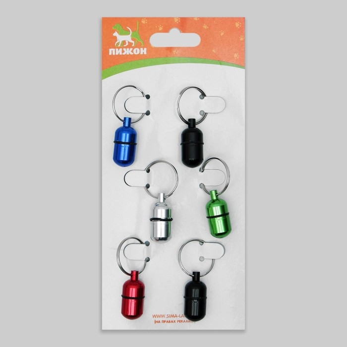 Адресник-капсула под записку, 2,2 х 1,3 см, фасовка 6 шт, микс