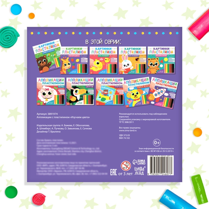 Аппликации пластилином «Изучаем цвета», 12 стр.
