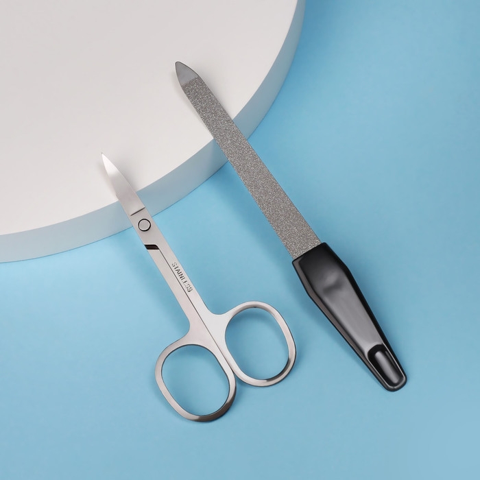 Набор маникюрный, 2 предмета, цвет чёрный/серебристый