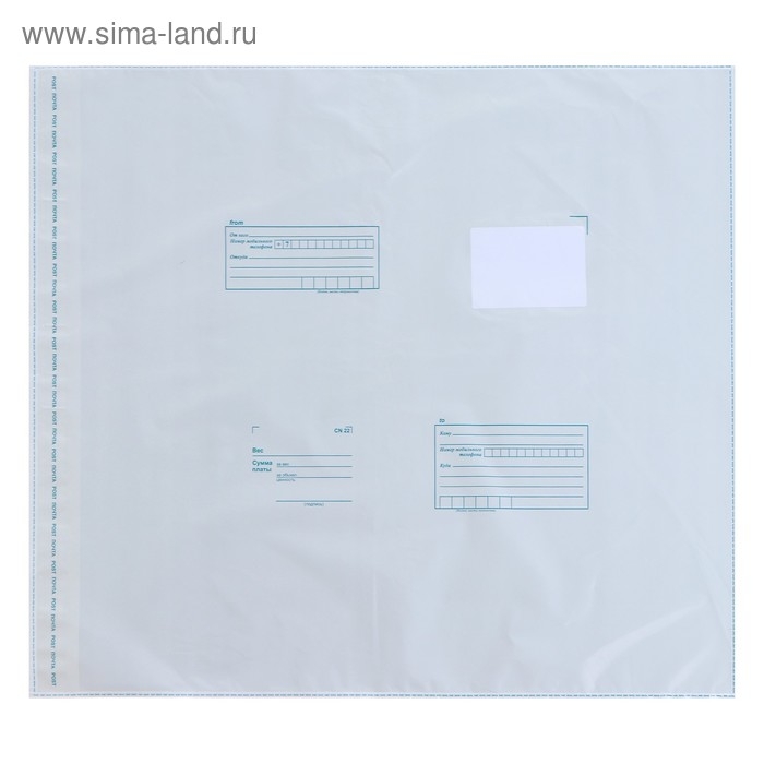 Пакет имеет размер 500х545 мм. Достаточно плотный и его содержимое не просматривается. Такой пакет особо прочен по сравнению с бумажными конвертами. Пластиковые пакеты соответствуют Техническим Условиям (ТУ) Почты России 2015 года и ПОУПС (Правилам оказания услуг Почтовой Связи) от 23 января 2015 год и принимаются во всех отделениях Почты России.