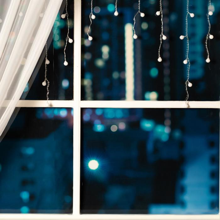 Гирлянда «Бахрома» 1.8 × 0.5 м с насадками «Шарики», IP20, прозрачная нить, 48 LED, свечение мульти (RG/RB), мигание, 220 В