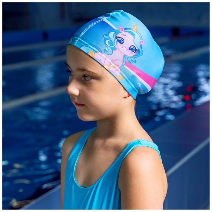 Шапочка для плавания детская ONLYTOP «Единорожка», тканевая, обхват 46-52 см