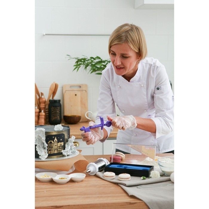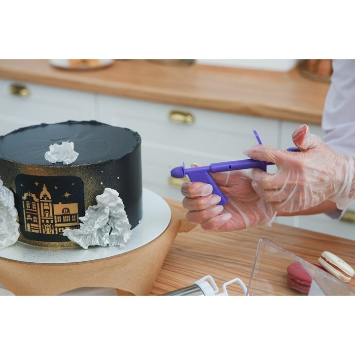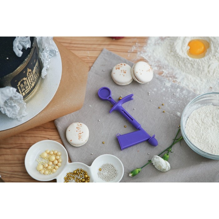 С помощью этого инструмента вы украсите торт мелкими бусинами без лишних хлопот. Для этого загрузите декор в прямоугольный отсек и, нажимая на поршень, выкладывайте бусины на кондитерское изделие.