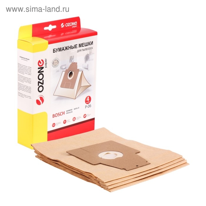 Мешки-пылесборники P-06 Ozone бумажные для пылесоса, 4 шт