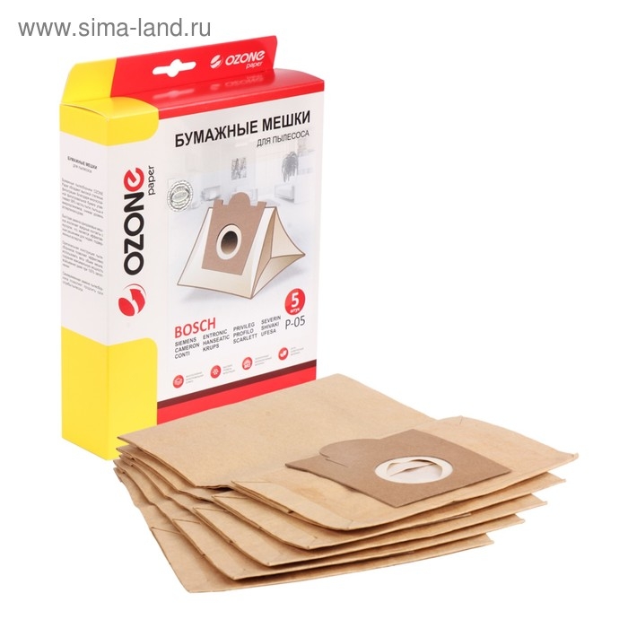 Мешки-пылесборники P-05 Ozone бумажные для пылесоса, 5 шт