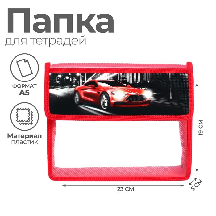 Папка для тетрадей А5 (230 х 190 х 50 мм), с клапаном на липучке, пластик/текстиль, Calligrata, "Тачка", с уголком