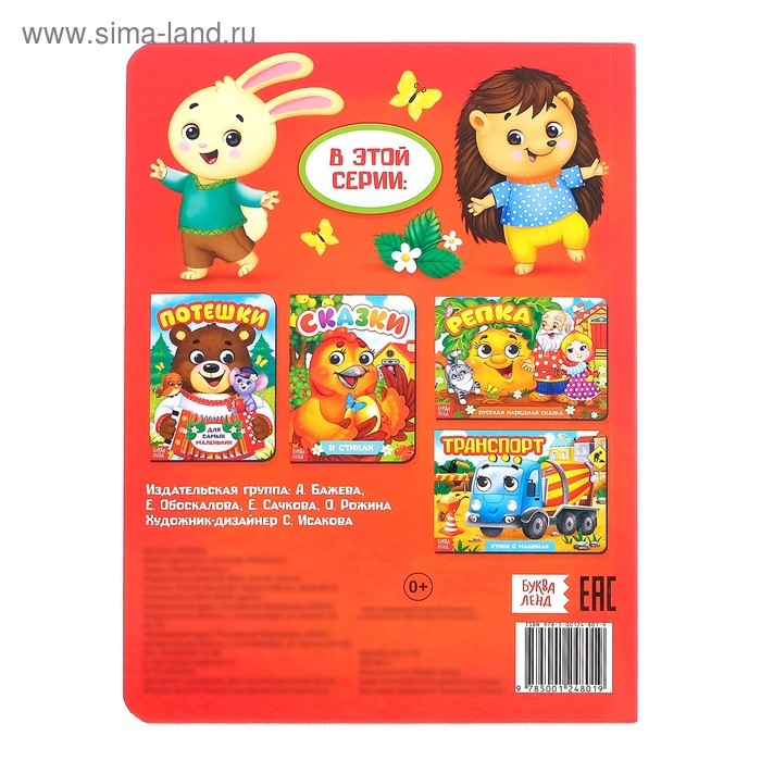 В книге вы найдёте небольшие стихи про милых зверят. Читайте потешки, обучайте кроху простым действиям и помогайте запоминать распорядок дня.