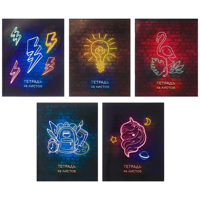 Тетрадь 48 листов в клетку Calligrata "Неон", обложка мелованный картон, УФ-лак, блок офсет, МИКС