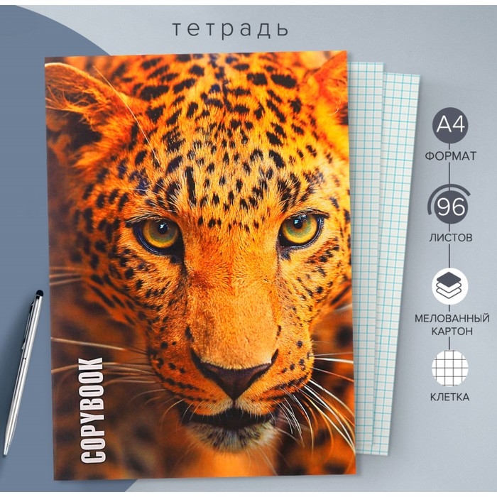Тетрадь А4, 96 листов в клетку "Ягуар", обложка мелованный картон, блок №2, белизна 75% (серые листы)
