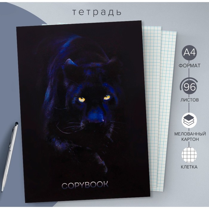Тетрадь А4, 96 листов в клетку "Пантера", обложка мелованный картон, блок офсет