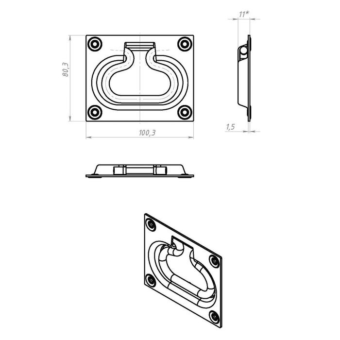 Ручка откидная скрытая 100х80 мм, покрытие цинк