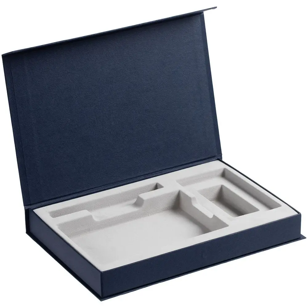 Коробка Silk с ложементом под ежедневник и ручку, ver. 2, синяя
