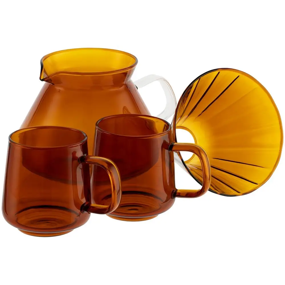 Элегантный кофейный набор Force Nexus добавит эстетики кофе-брейку и порадует ценителей своим изысканным современным исполнением. Благодаря тонкому боросиликатному стеклу кружки, воронка и кофейник Force Nexus очень легкие, а янтарный цвет привлекает внимание и добавляет теплоты.