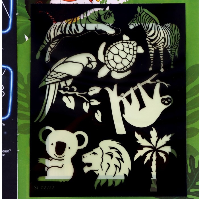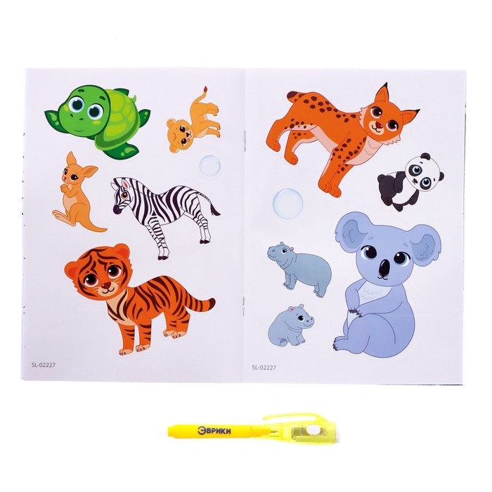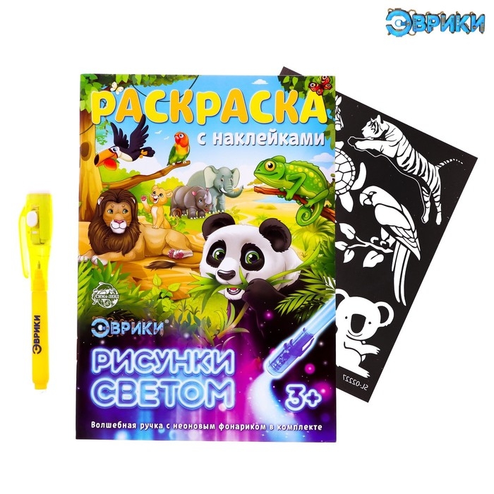 Набор для рисования в темноте «Дикие животные», с наклейками и раскраской, ручка с фонариком, невидимые чернила