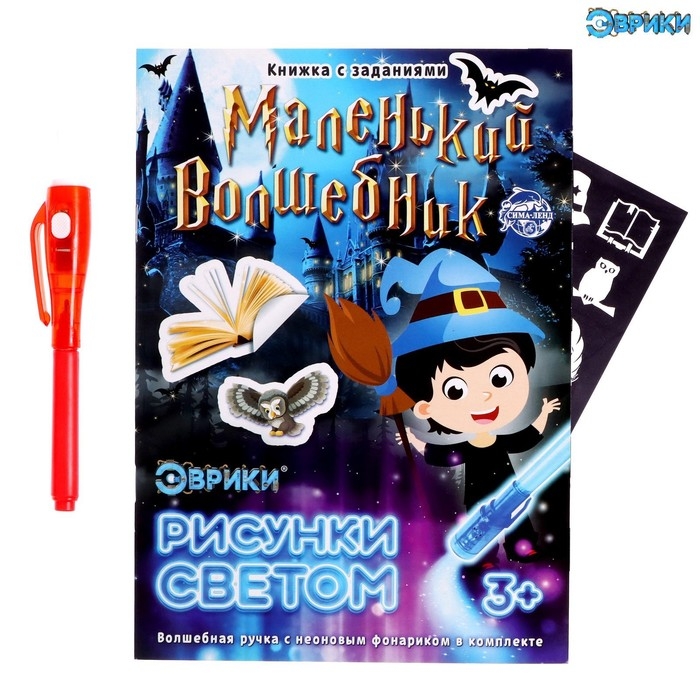 Активити-книжка с рисунками светом «Маленький волшебник», ручка с фонариком и невидимыми чернилами