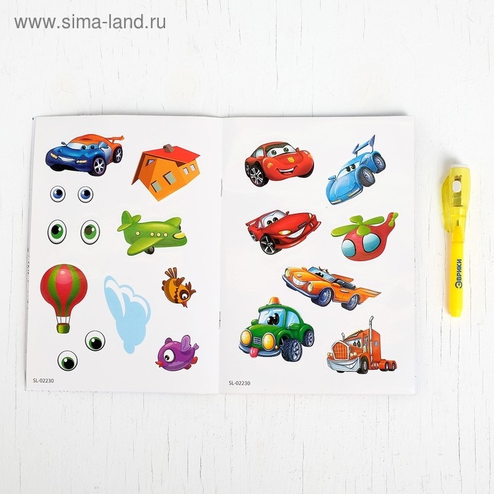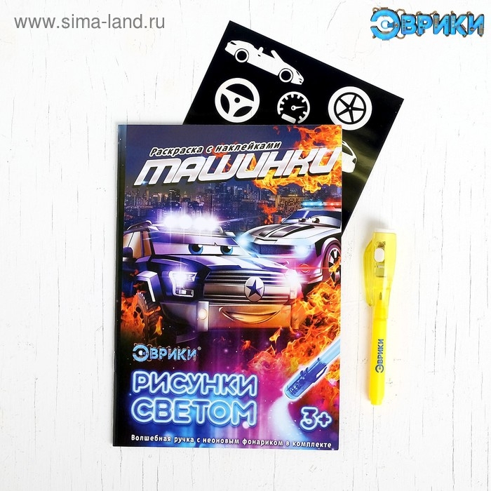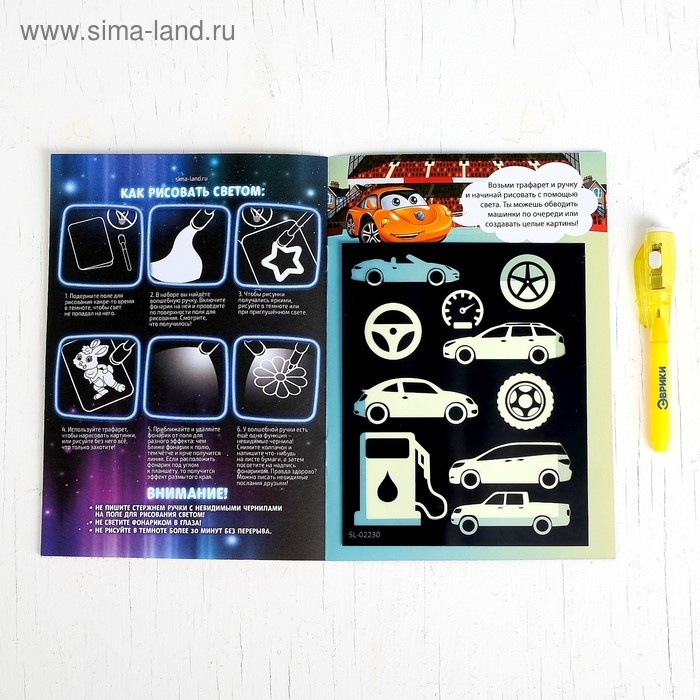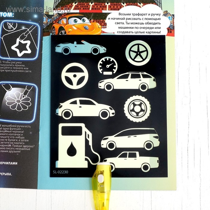 Набор для рисования светом «Тачки», с наклейками и раскраской, ручка с фонариком и невидимыми чернилами