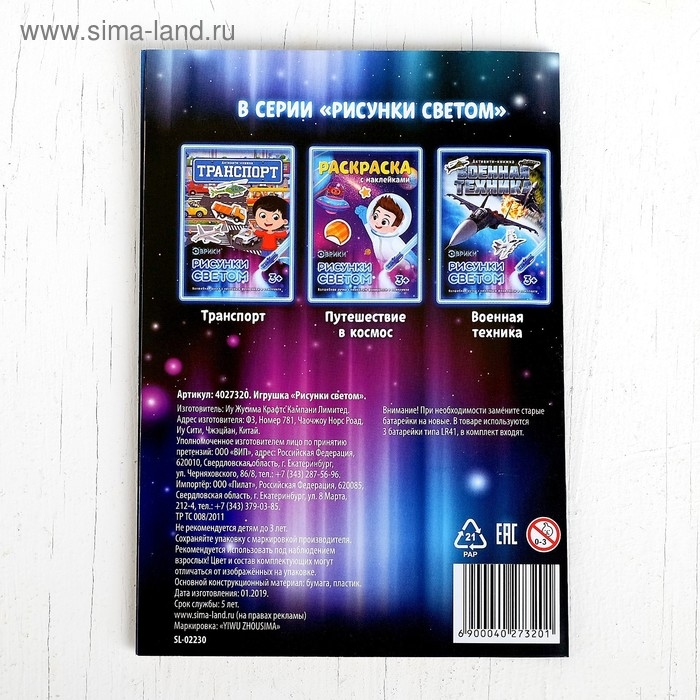 Набор для рисования светом расширит творческие возможности ребёнка. Малыш будет создавать рисунки световым маркером на специальном поле. А ещё он найдёт в комплекте наклейки и раскраску. Ребёнок сможет разрисовывать картинки и приклеивать на них яркие стикеры.