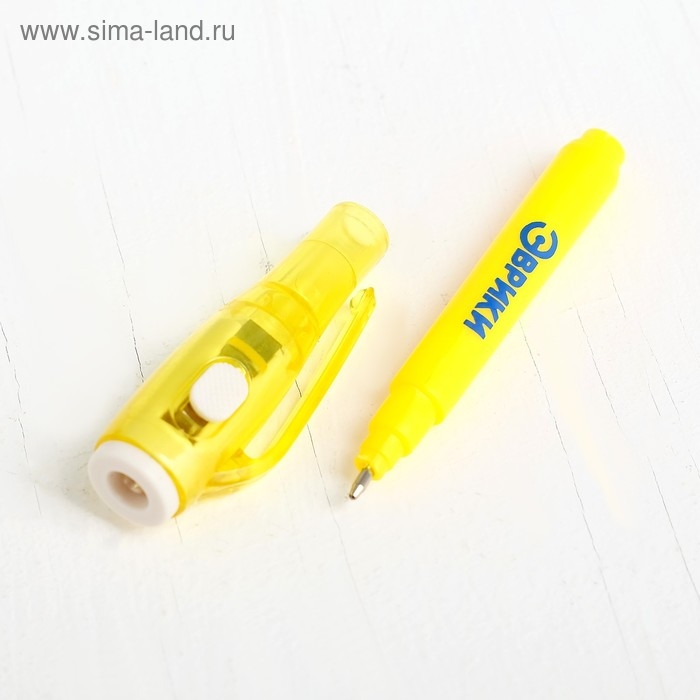 У волшебной ручки есть ещё одна функция — невидимые чернила. Снимите колпачок и напишите что-нибудь на листе бумаги, а затем посветите на надпись фонариком. Рисунок проявится.