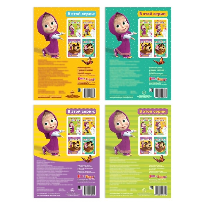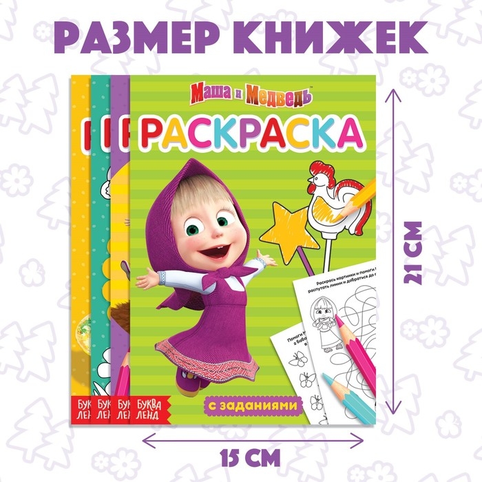 Раскраска с заданиями набор 4 шт. по 20 стр. Маша и Медведь