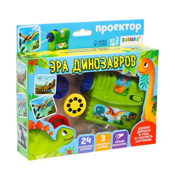 Проектор «Эра динозавров», 3 слайда, 24 картинки