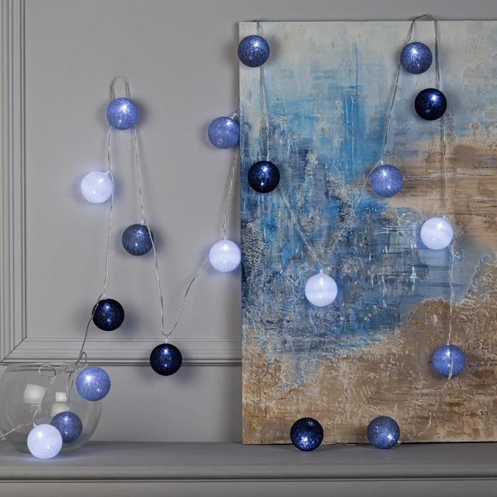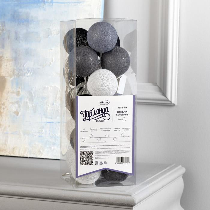 Гирлянда «Нить» 5 м с насадками «Клубки кофейные», IP20, прозрачная нить, 20 LED, свечение белое, 220 В