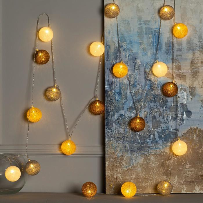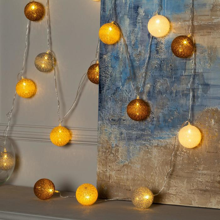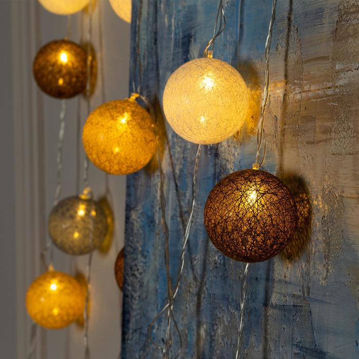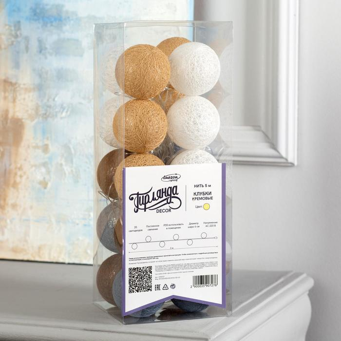 Гирлянда «Нить» 5 м с насадками «Клубки кремовые», IP20, прозрачная нить, 20 LED, свечение тёплое белое, 220 В