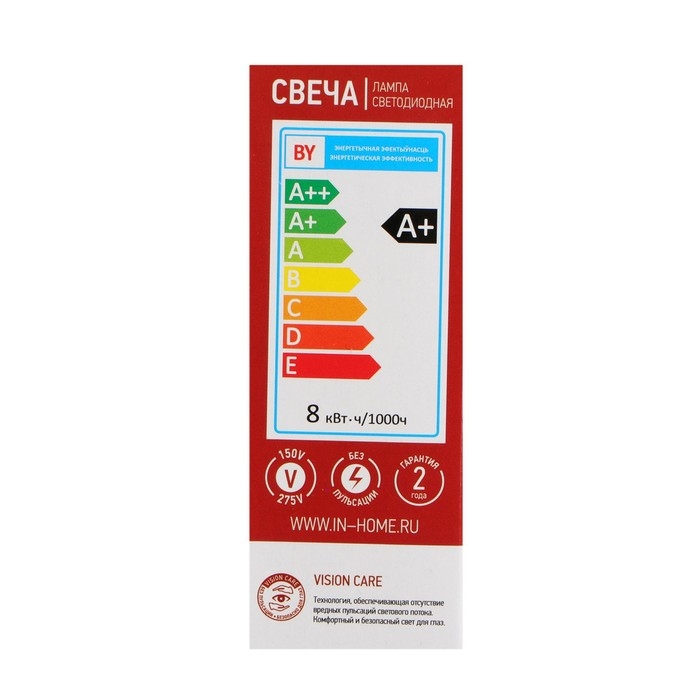 Лампа светодиодная IN HOME LED-СВЕЧА-VC, Е14, 8 Вт, 230 В, 4000 К, 760 Лм