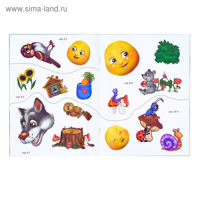 Задача малыша — найти подходящее место на страничке и наклеить стикер с персонажем или сказочным элементом.