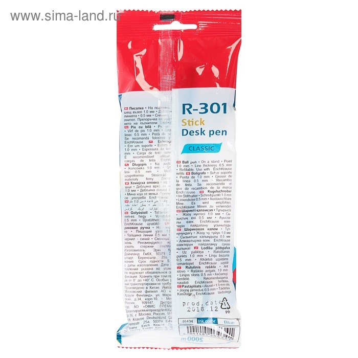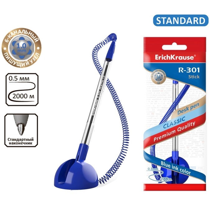 Ручка на подставке шариковая ErichKrause R-301 Desk Pen, узел 1.0 мм, чернила синие, длина линии письма 2000 метров