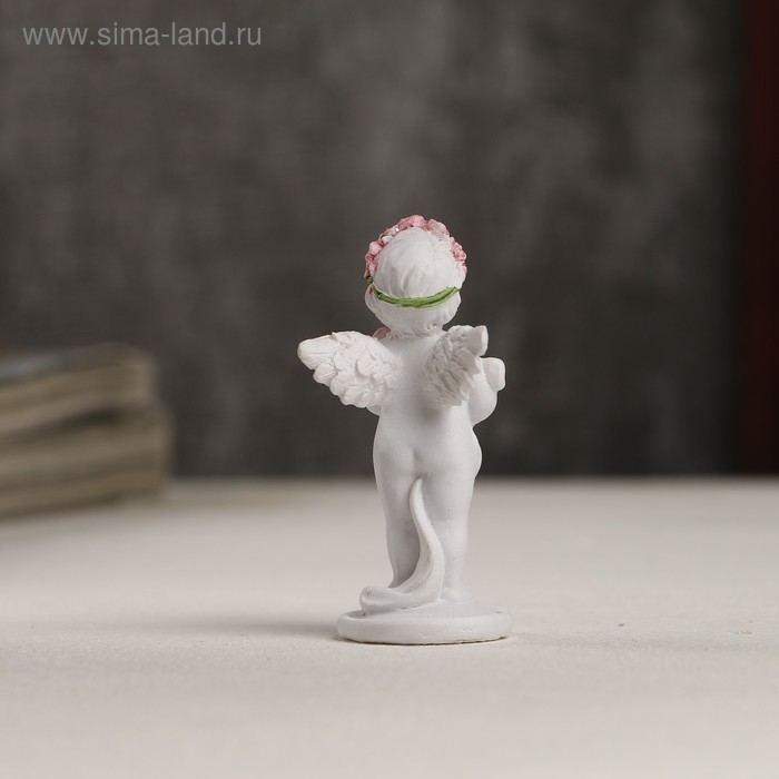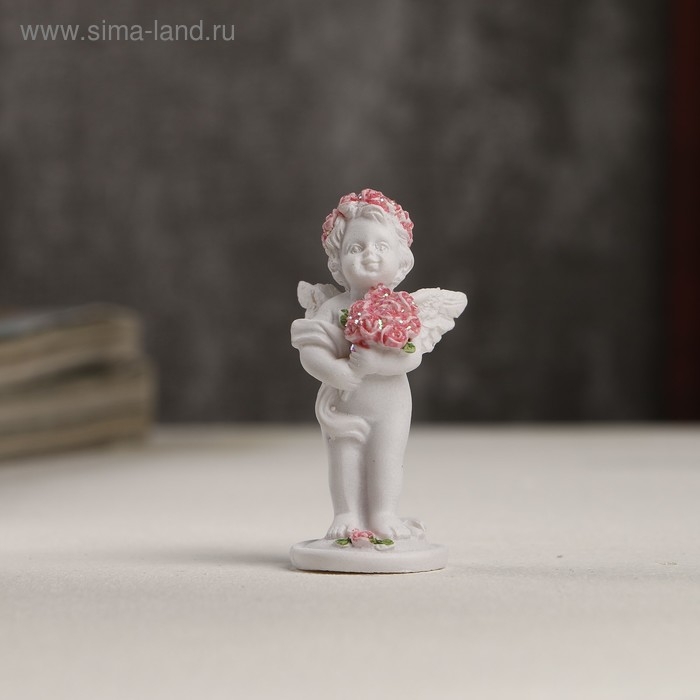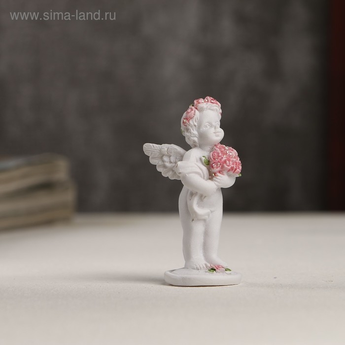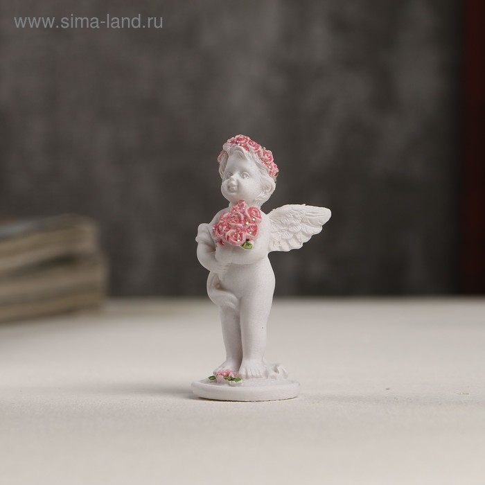 Сувенир полистоун "Белоснежный ангел в розовом веночке с букетом роз" 5,3х2,3х2,3 см