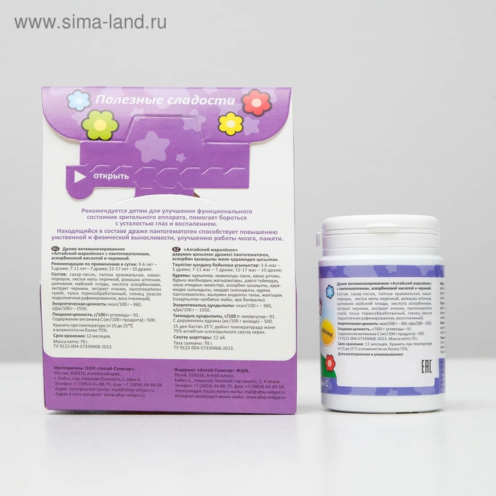 Драже для детей Altay Seligor «Алтайский маралёнок» с пантогематогеном, витамином С и черникой, 70 г