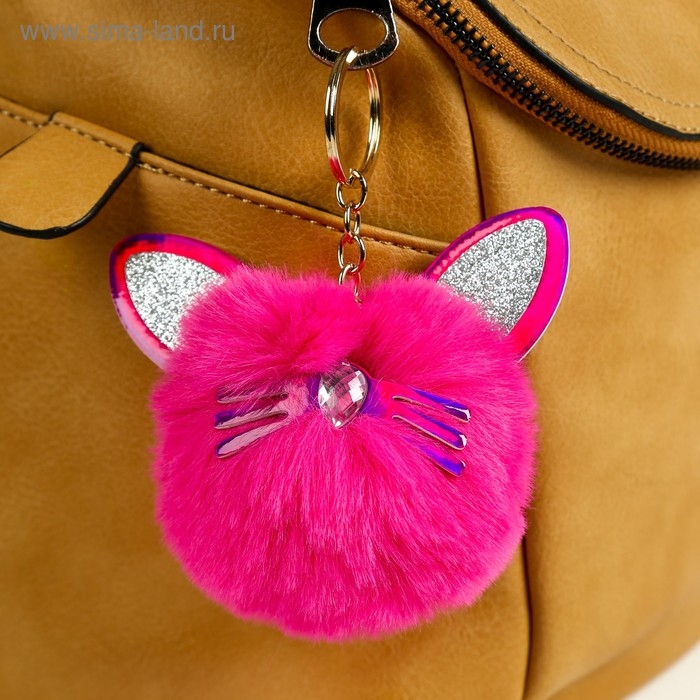 Пушистик на кольце "Зайка с блестящими ушками" 9,5х9х8 см