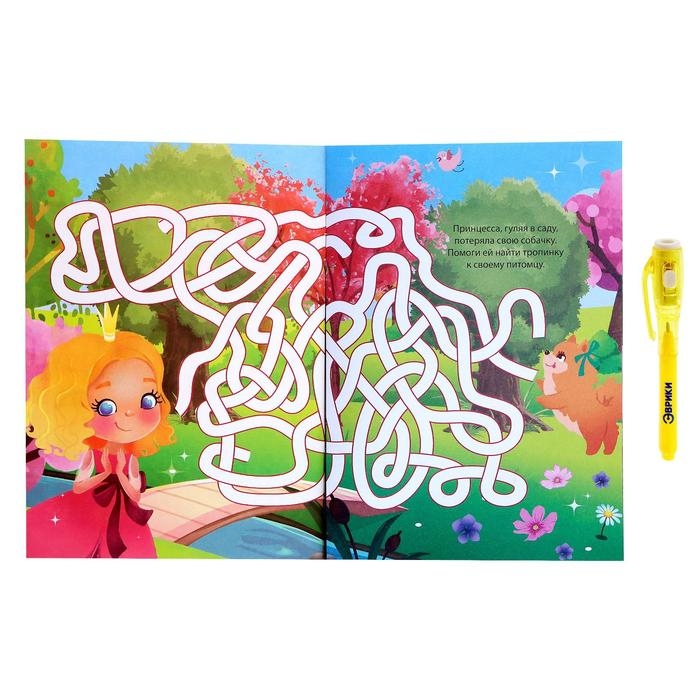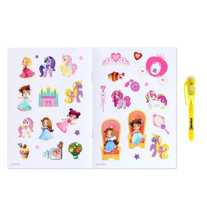 Активити-книжка с рисунками светом «Принцессы», ручка с фонариком и невидимыми чернилами