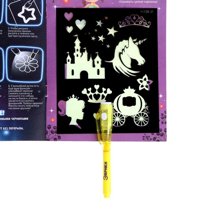 Набор для рисования светом «Единорог», А5, ручка с фонариком и невидимыми чернилами