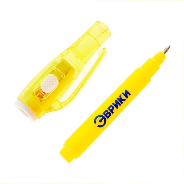 Чтобы рисовать невидимыми чернилами, снимите колпачок с ручки, напишите что-нибудь, а затем посветите фонариком. Изображение проявится.