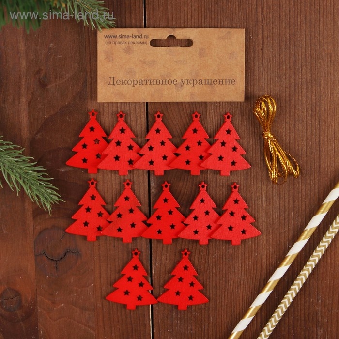 Набор мини подвесок «Красные ели», размер 1 шт: 4.5 × 3.5 см