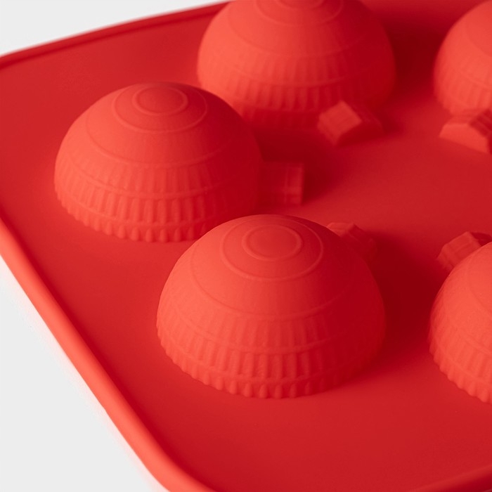 Форма для шоколада новогодняя Доляна «Шар», силикон, 15×15×2 см, 6 ячеек, цвет красный