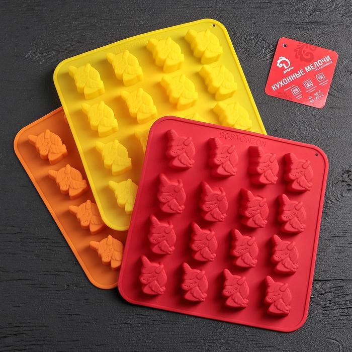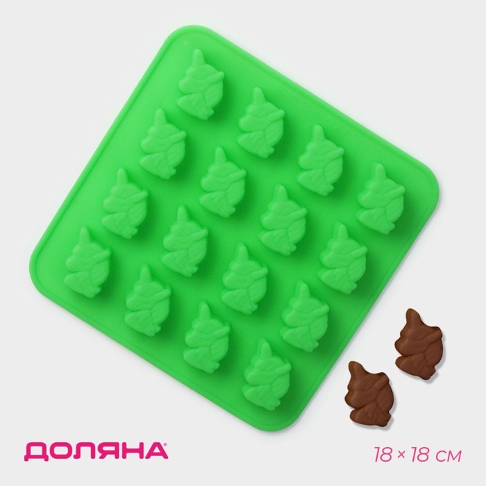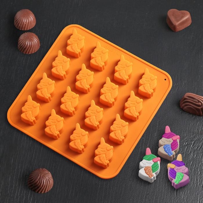 Форма для конфет и шоколада Доляна «Единорог», силикон, 18×18×1 см, 16 ячеек, цвет МИКС