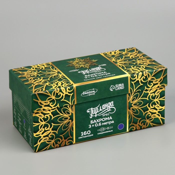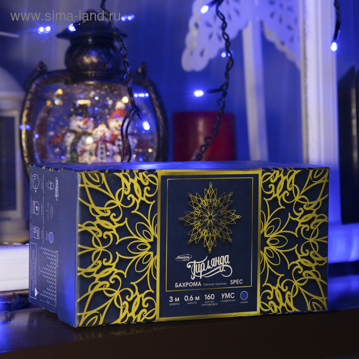 Гирлянда «Бахрома» 3 × 0.6 м, IP44, УМС, тёмная нить, 160 LED, свечение синее, мерцание белым, 220 В