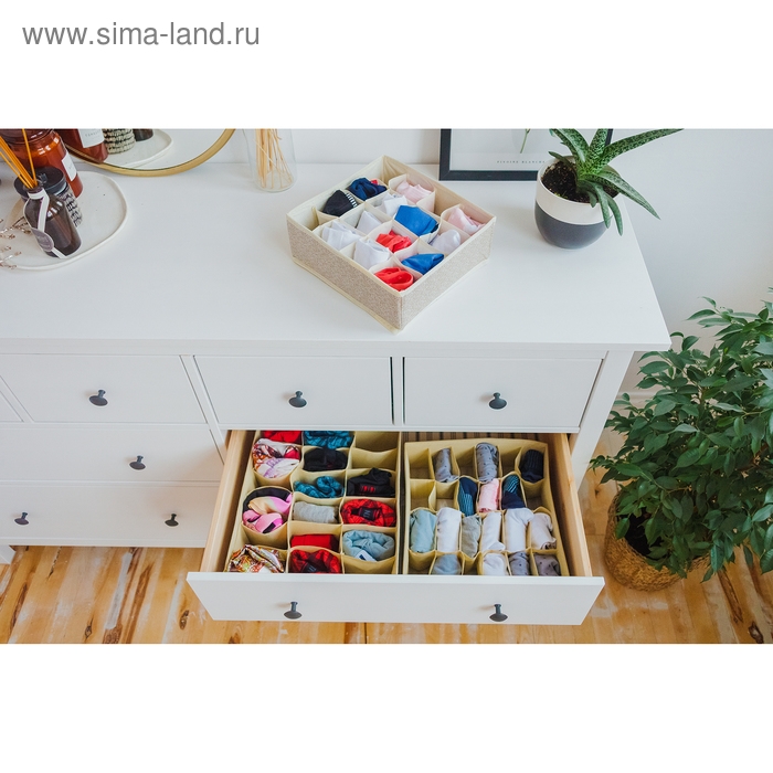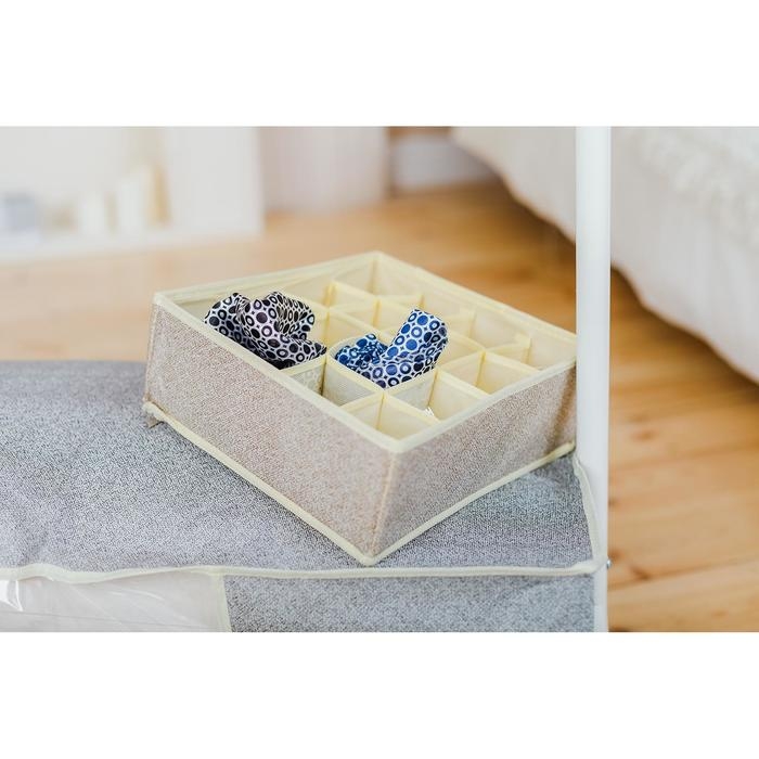 Органайзер для хранения белья Доляна «Европа», 16 ячеек, 27×25×10 см, цвет бежевый