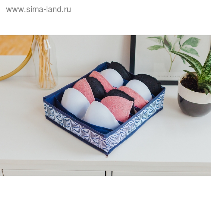 Органайзер для хранения белья Доляна «Волна», 7 отделений, 34×30×8 см, цвет синий