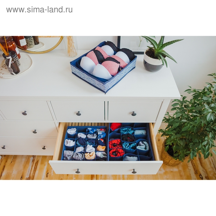 Органайзер для хранения белья Доляна «Тропики», 16 ячеек, 27×25×10 см, цвет синий