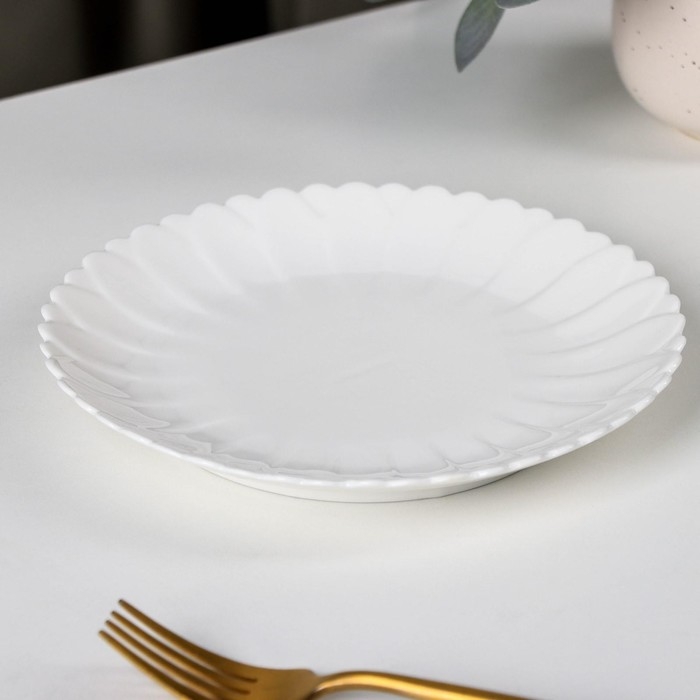 Тарелка фарфоровая обеденная Magistro «Цветок», d=19 см, цвет белый
