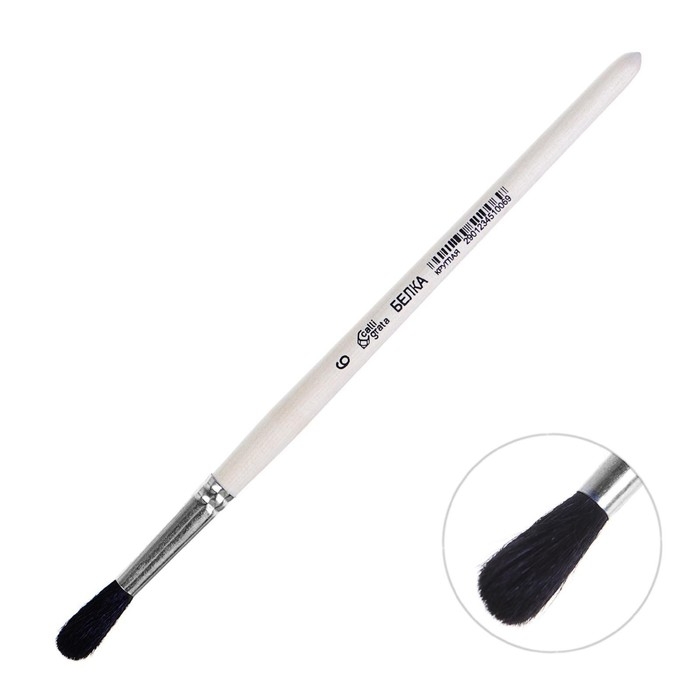 Кисть для рисования, Белка круглая № 6 (диаметр обоймы 6 мм; длина волоса 22 мм), деревянная ручка, Calligrata