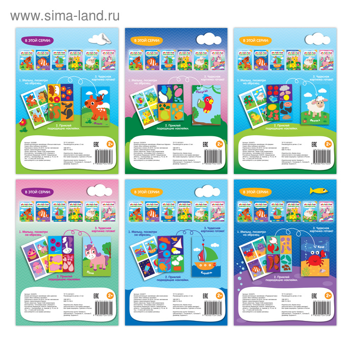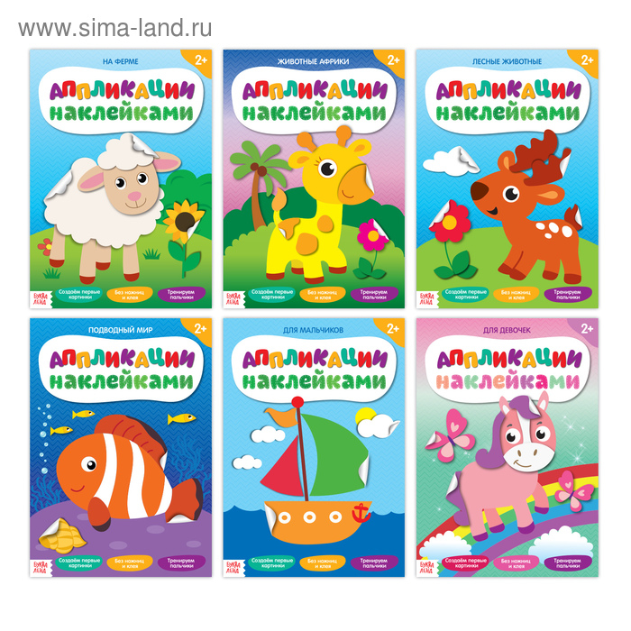 Аппликации наклейками набор, 6 шт. по 12 стр.
