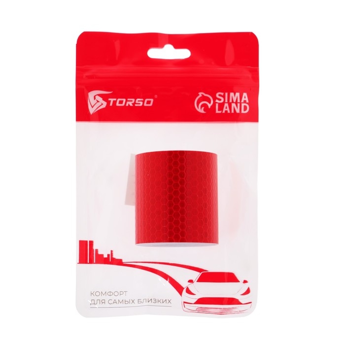 Светоотражающая лента TORSO, самоклеящаяся, красная, 5 см х 3 м