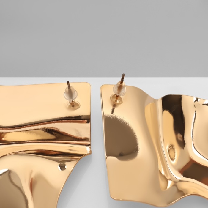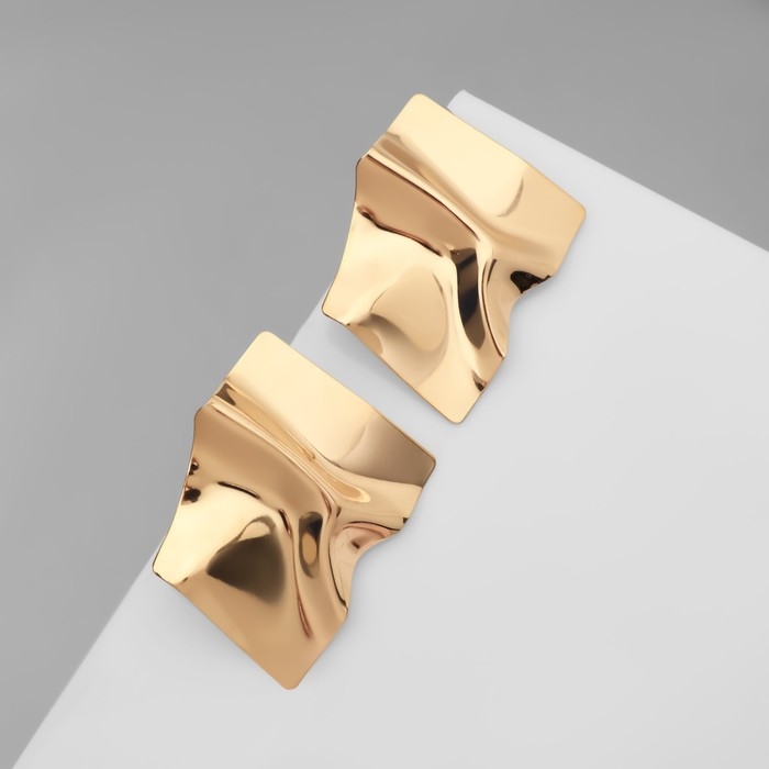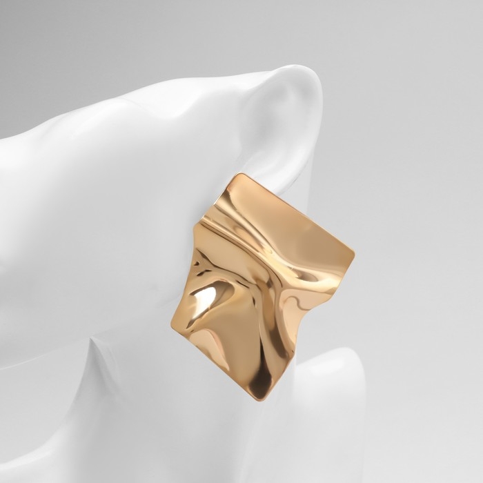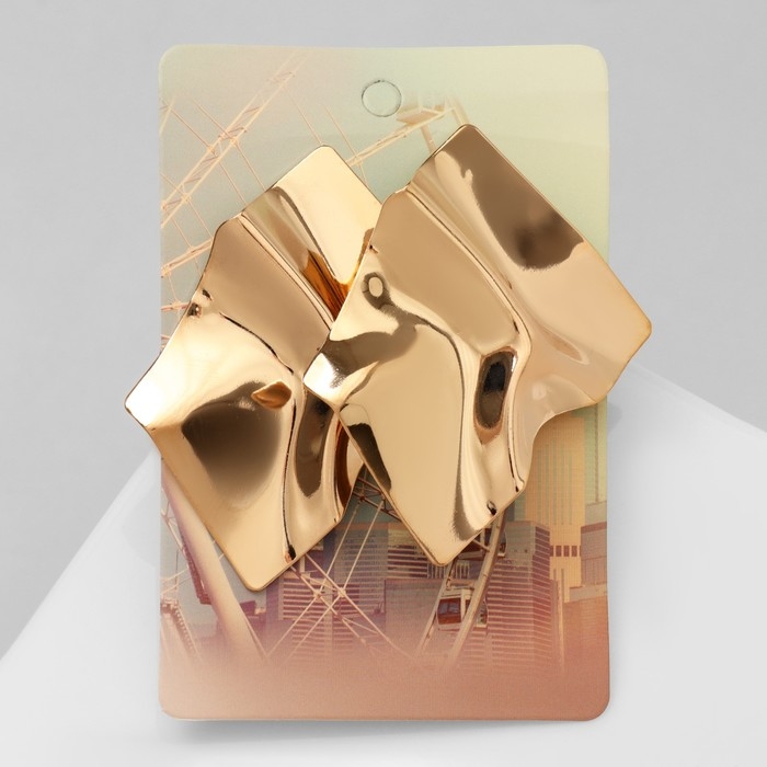 Серьги металл «Атмосфера» ромб мятый, цвет золото