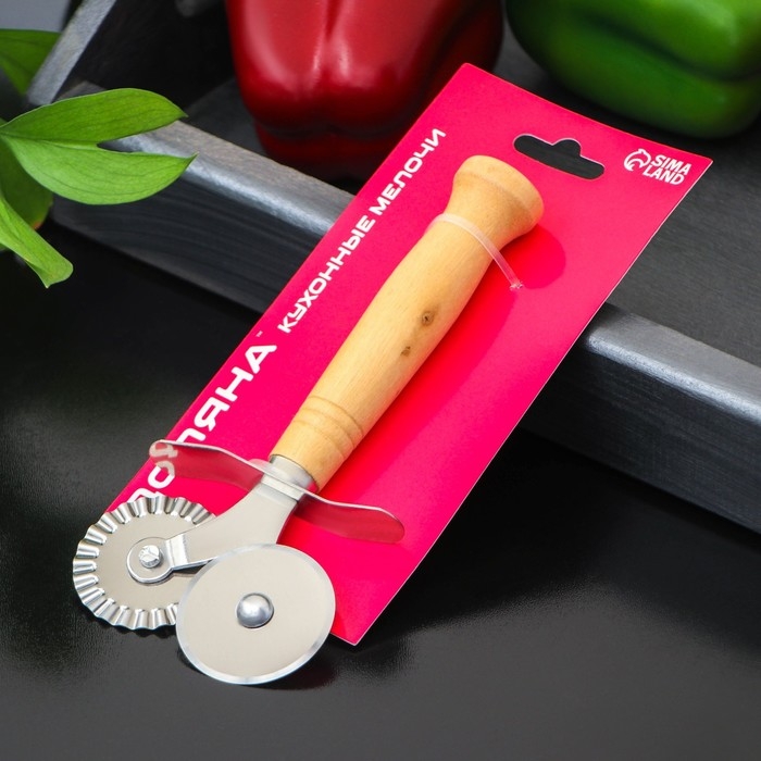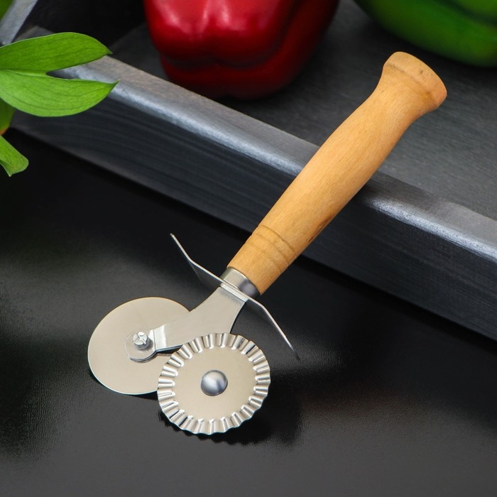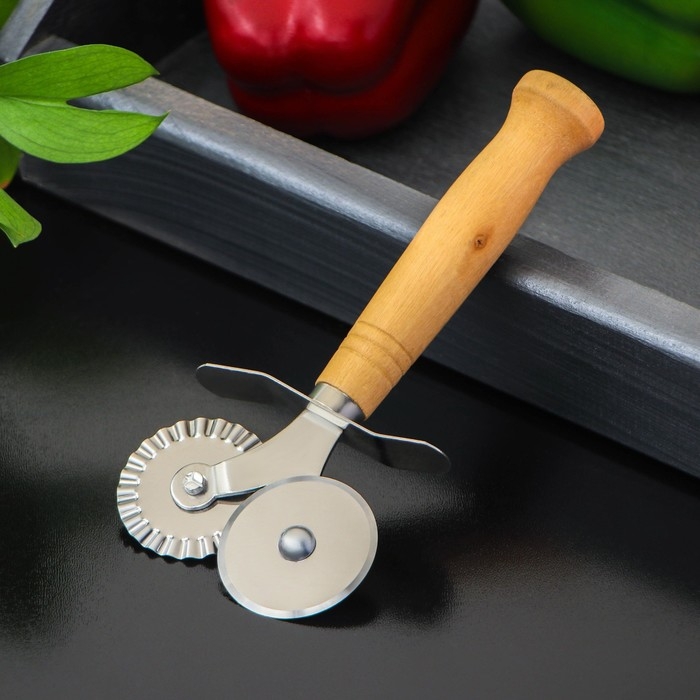 Нож для пиццы и теста двойной Доляна «Классик», 16 см, цвет бежевый